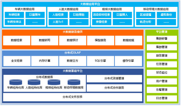 大數據資源系統建立于分布式架構之上,承擔了結構化數據采集、數據分布式存儲、數據分布式計算、大數據服務提供等支撐服務。系統架構按照自下往上的數據應用邏輯,包含大數據基礎平臺、分布式OLAP引擎、大數據服務提供、平臺管理、大數據應用平臺等多個組成部分,其中服務提供和應用組成了資源管理平臺,整體架構圖如下: